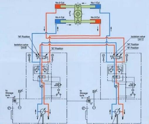 無論是哪種品牌的撞桿式舵機,其基本結(jié)構(gòu)還是比較相似的,在這里我們以川崎生產(chǎn)的舵機進行舉例,來加深大家的印象,順便讓大家了解一下什么是閥控性,什么是泵控型舵機,簡而言之,閥控性是依靠換向閥來進行換向的舵機,大部份應(yīng)用在相對較小的船舶上。