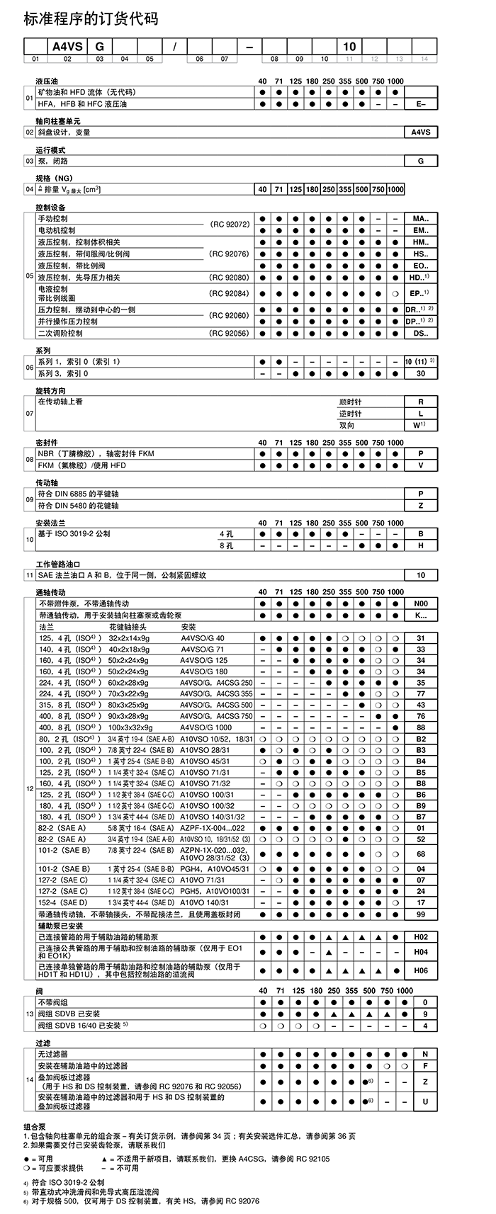 REXROTH力士樂柱塞泵A4VSG系列特性